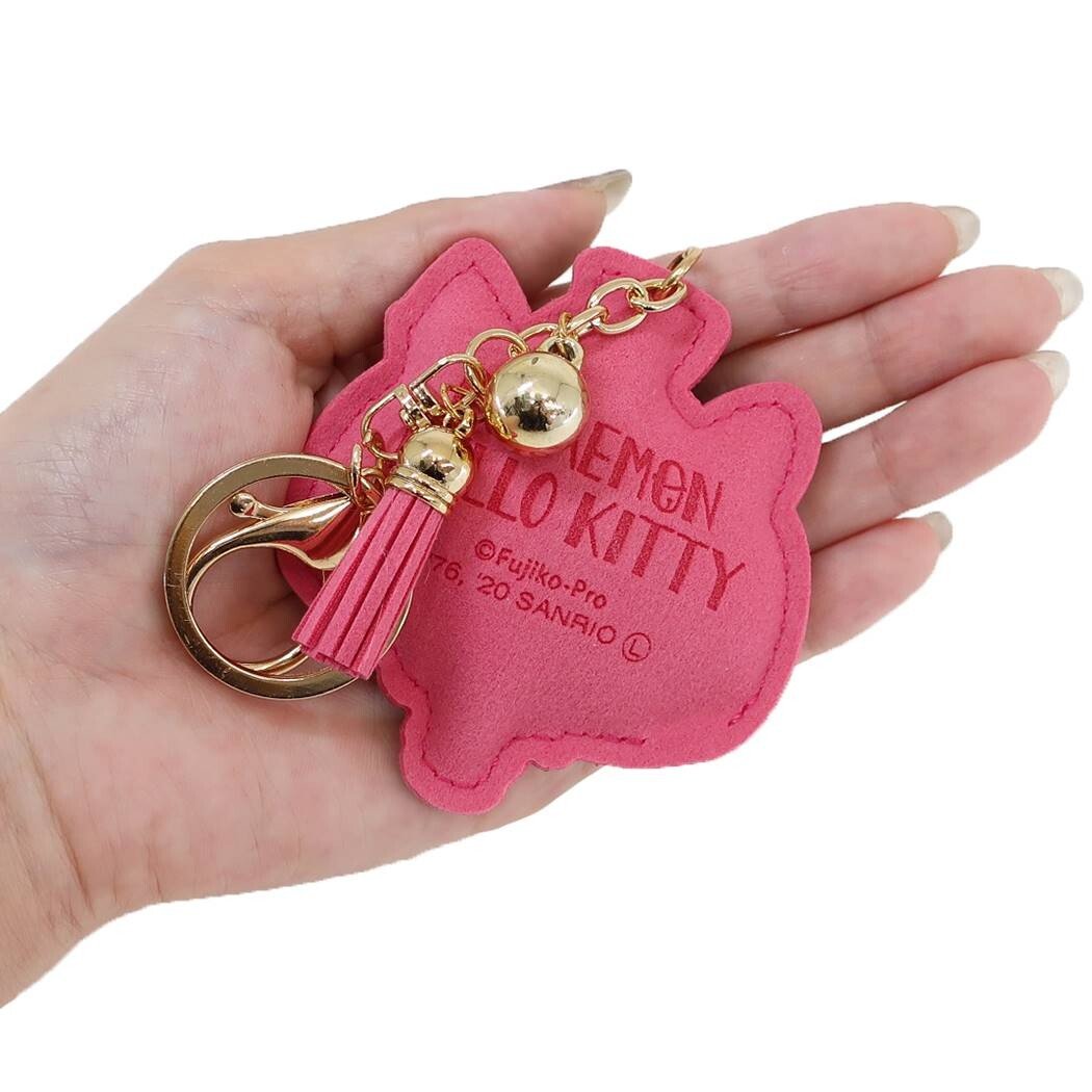 Display this adorable Doraemon and Hello Kitty mashup wherever you like—clip it to your bag for instant charm or showcase it as a room decoration. This glittery leather key holder brings together two beloved characters in one delightful accessory. Compact at approximately 70 × 80 × 24mm, it's the perfect size for adding a splash of kawaii personality to your everyday style.