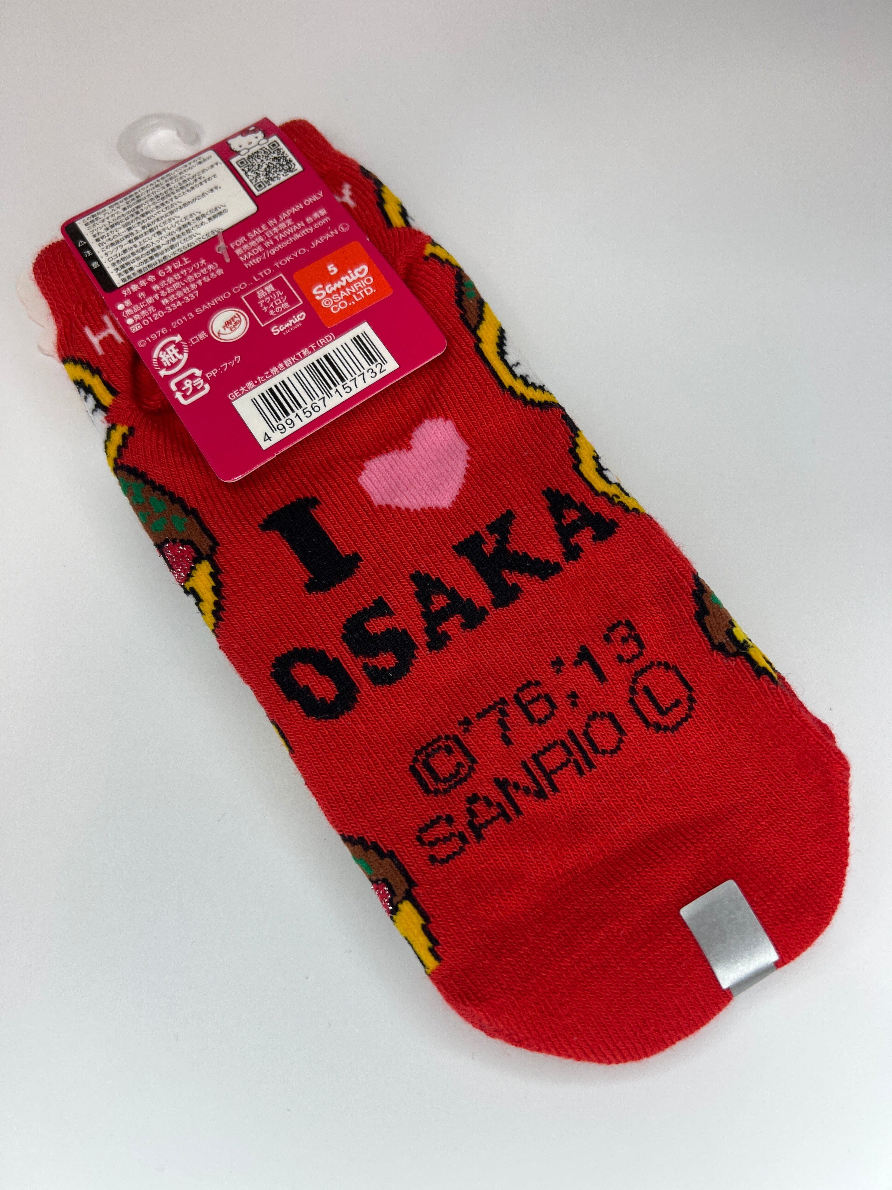 Meet Hello Kitty's most delicious debut! These Osaka-exclusive socks celebrate the iconic character reimagined as a cheerful takoyaki face in vibrant red. Sized for feet 22-24 cm, they're a playful nod to Osaka's beloved street food culture. Perfect for Sanrio fans and regional souvenir collectors, these limited-edition gotochi socks blend cuteness with local flavor. Slip them on and spread smiles wherever you go—your feet will thank you for the comfort and charm!