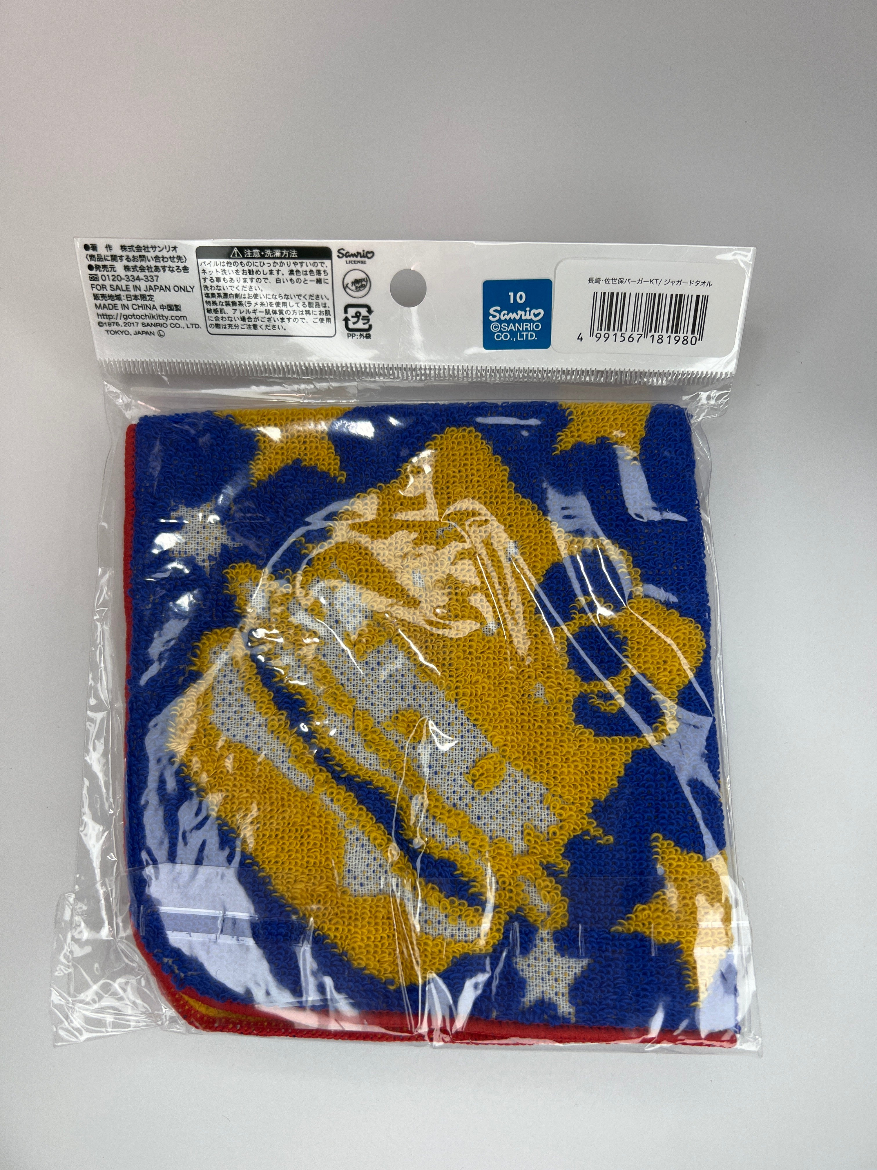 Sink your teeth into cuteness with this mouthwatering Nagasaki-exclusive hand towel! Hello Kitty pays homage to the famous Sasebo hamburger in eye-catching blue, merging local food pride with Sanrio charm. Plush and practical, it's perfect for everyday use or as a quirky collectible that celebrates regional flavors. Whether you're a burger enthusiast, Hello Kitty devotee, or gotochi treasure hunter, this limited-edition towel brings delightful personality to your home. Don't let this savory-sweet gem slip away—grab yours today!