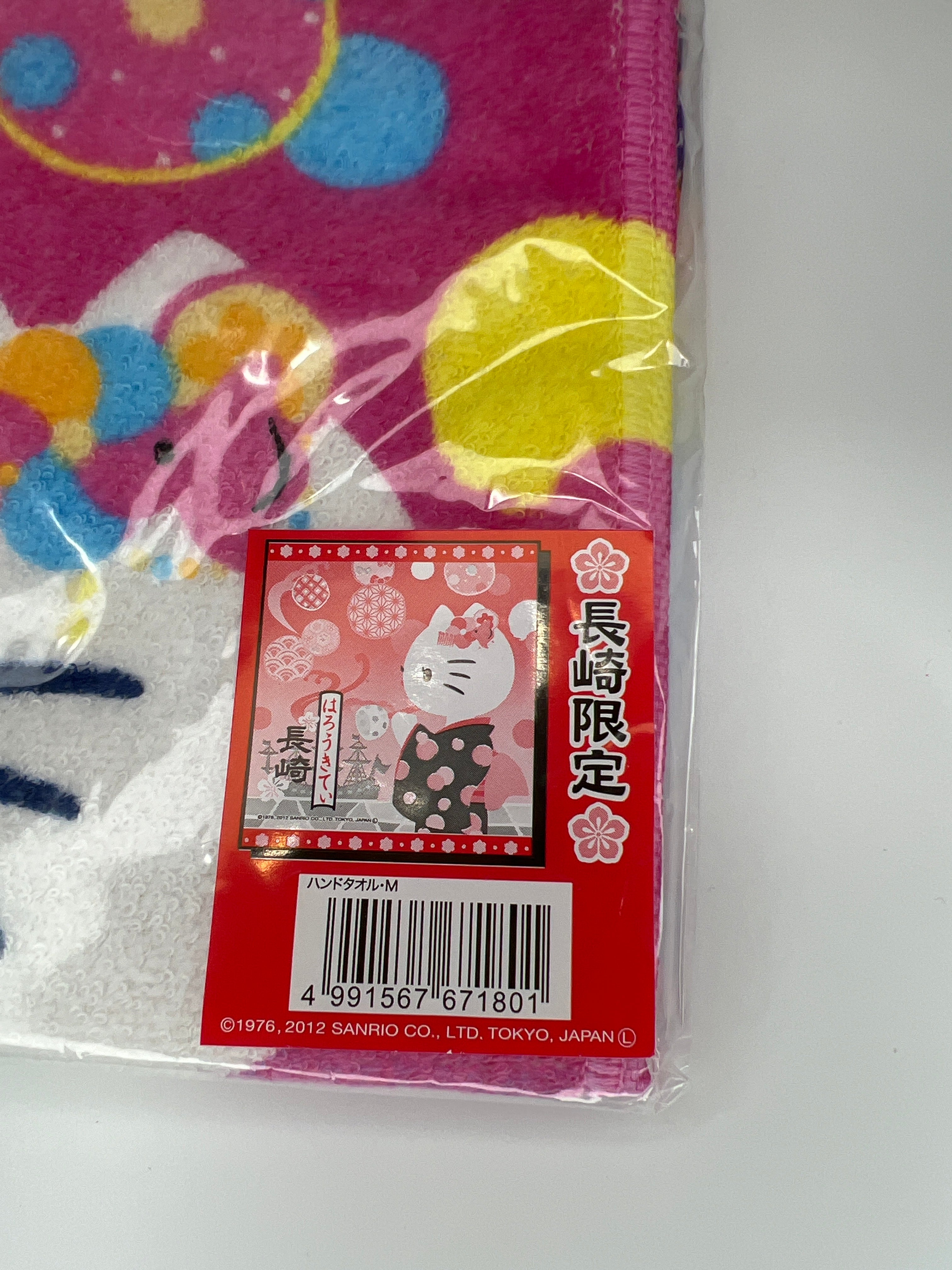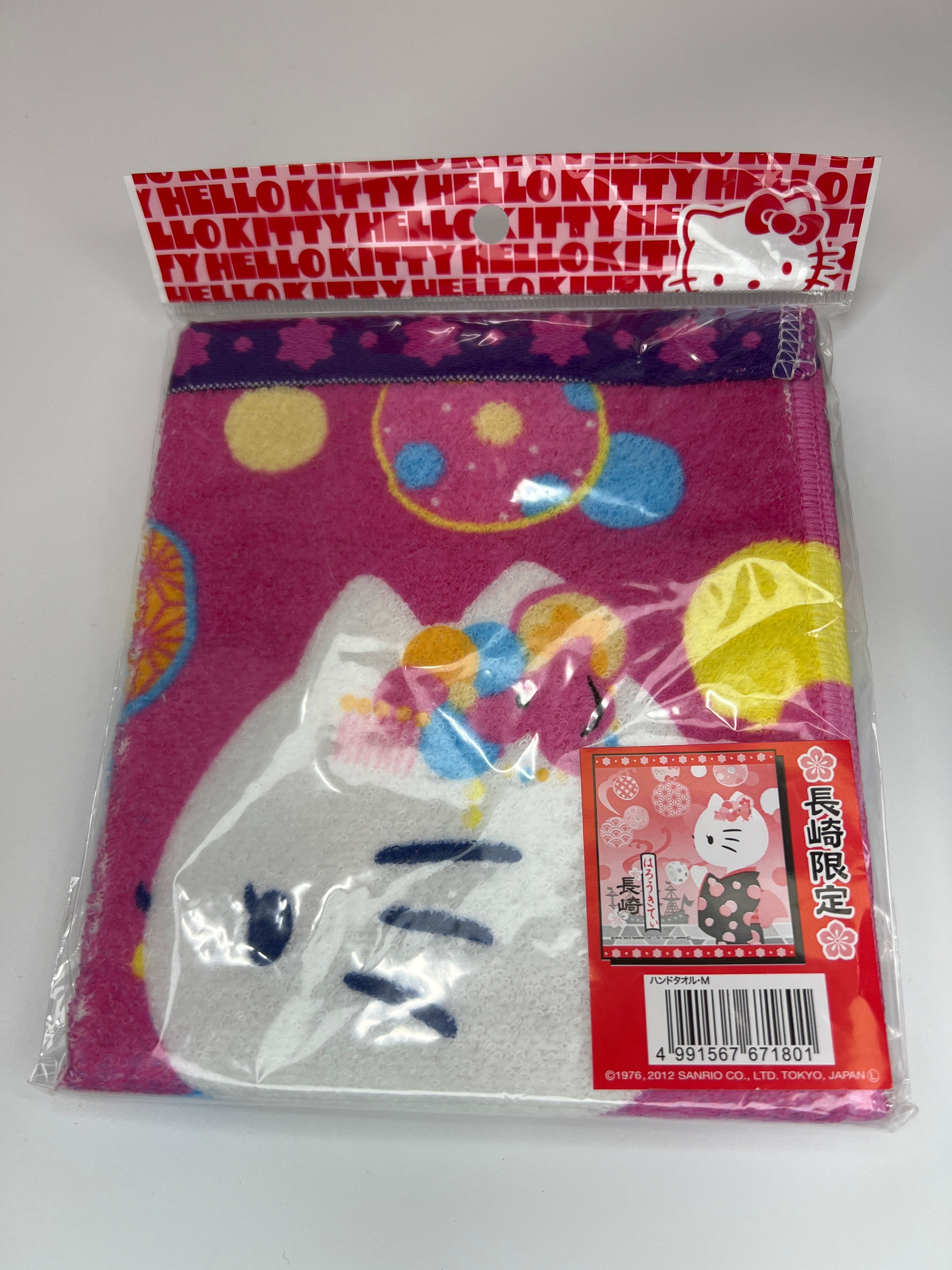 Experience the perfect blend of tradition and cuteness with this Nagasaki-exclusive hand towel! Hello Kitty strikes a graceful pose in an exquisite kimono, celebrating Japanese cultural elegance. Draped in soft pink, this limited-edition towel is both practical and precious—ideal for drying hands or displaying as a treasured collectible. Whether you're a devoted Sanrio enthusiast or a lover of regional gotochi items, this charming piece brings warmth and whimsy to any space. Don't miss out on this special Nagasaki gem!