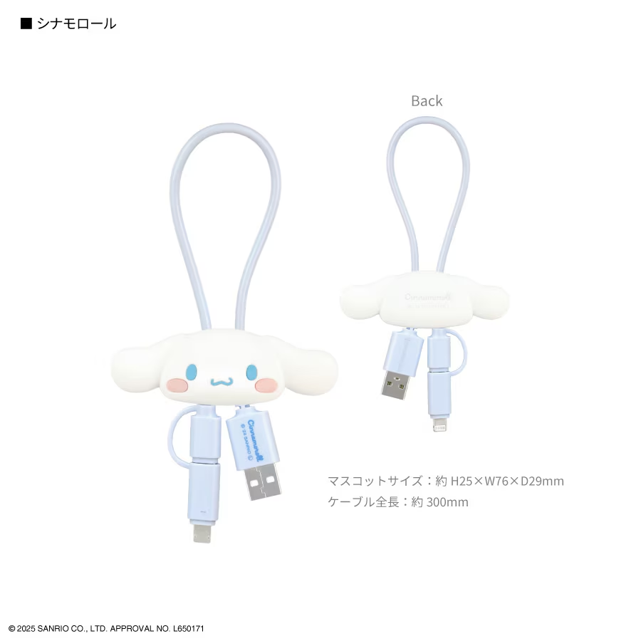 Sanrio Characters Multi-Charging Cable with Mascot Cover - Cinnamoroll