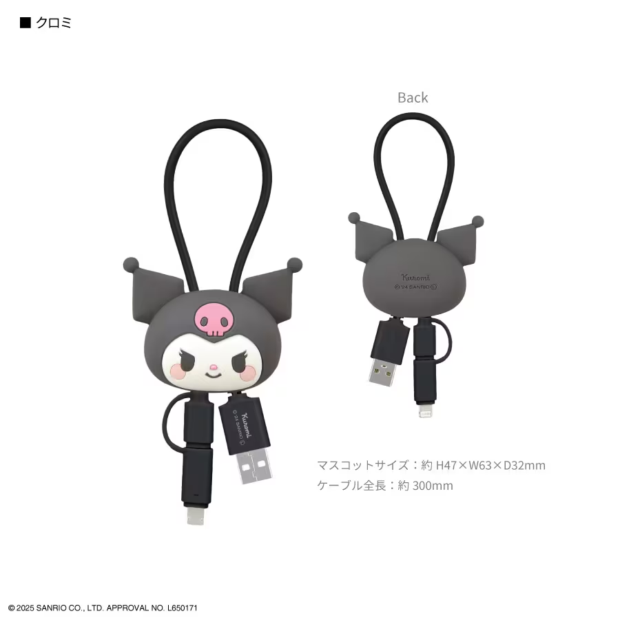 Sanrio Characters Multi-Charging Cable with Mascot Cover - Kuromi