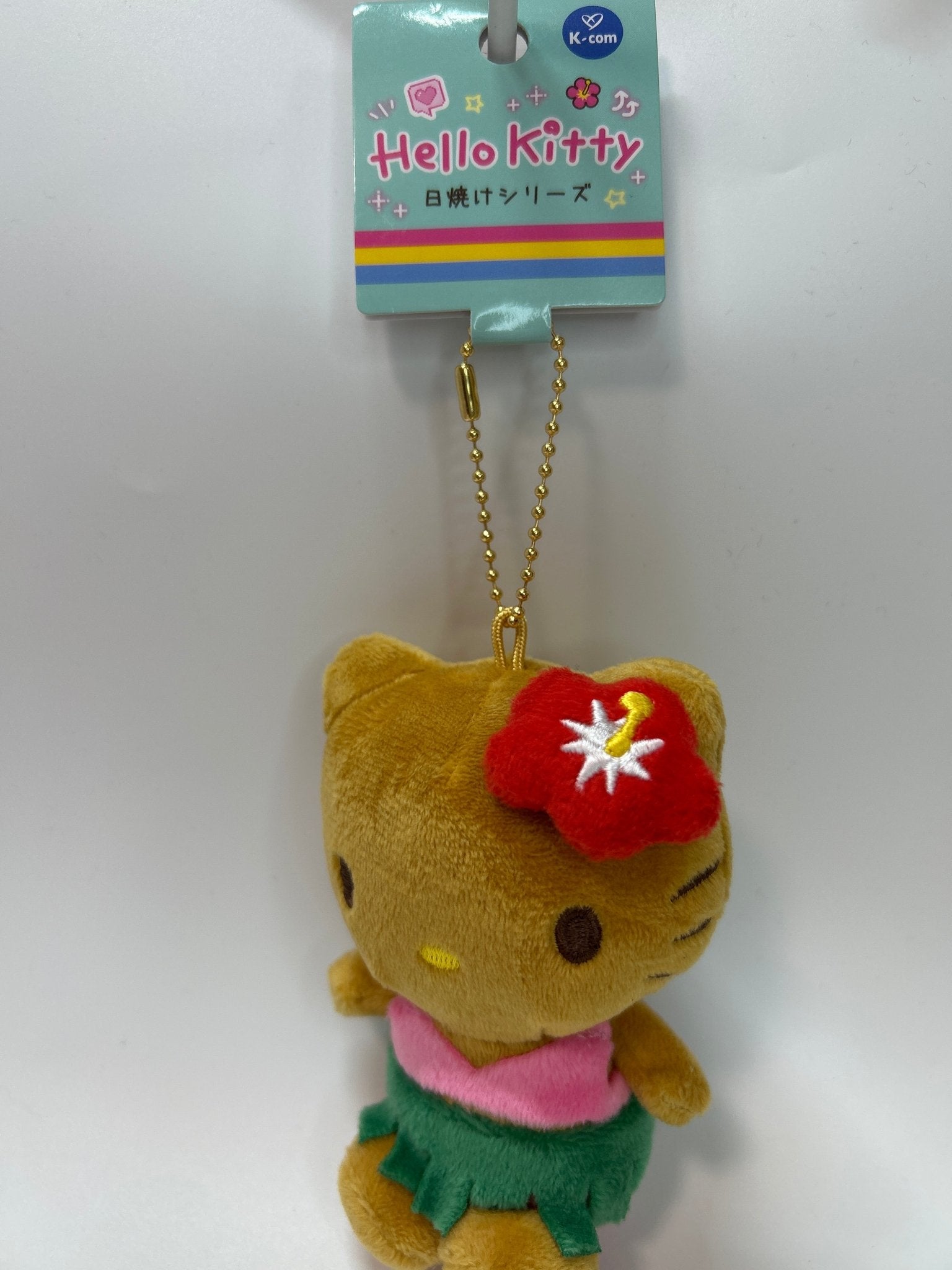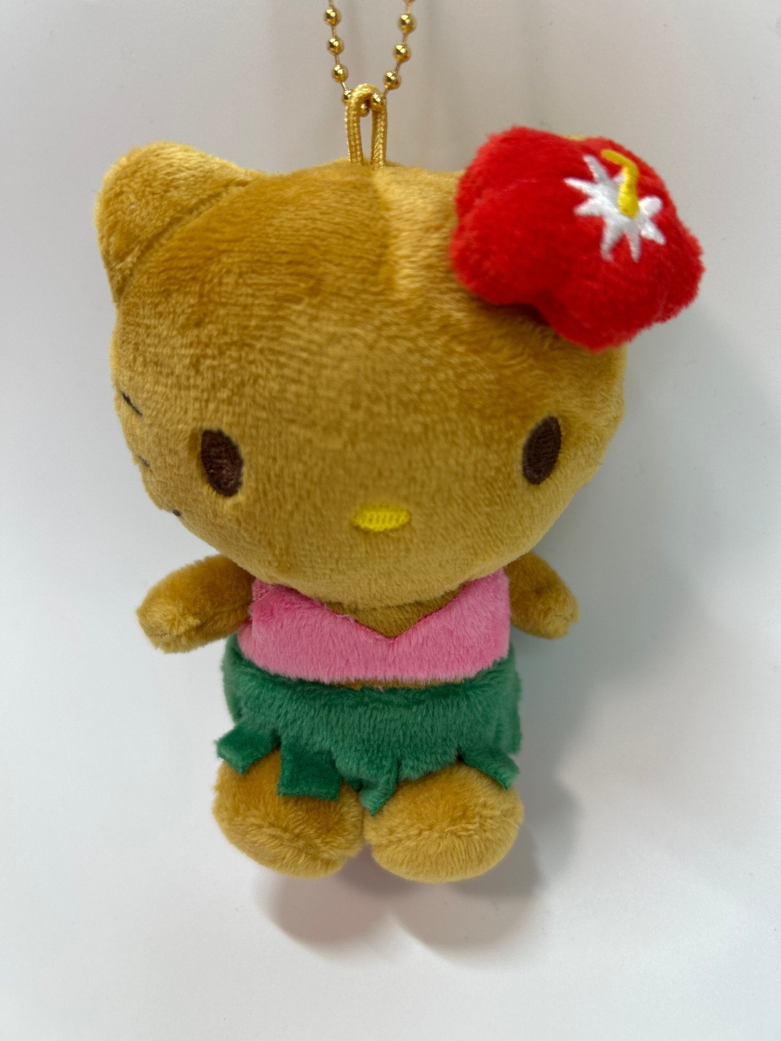 Tan Hello Kitty Mascot Holder Hibiscus Heisei Retro with Ball Chain