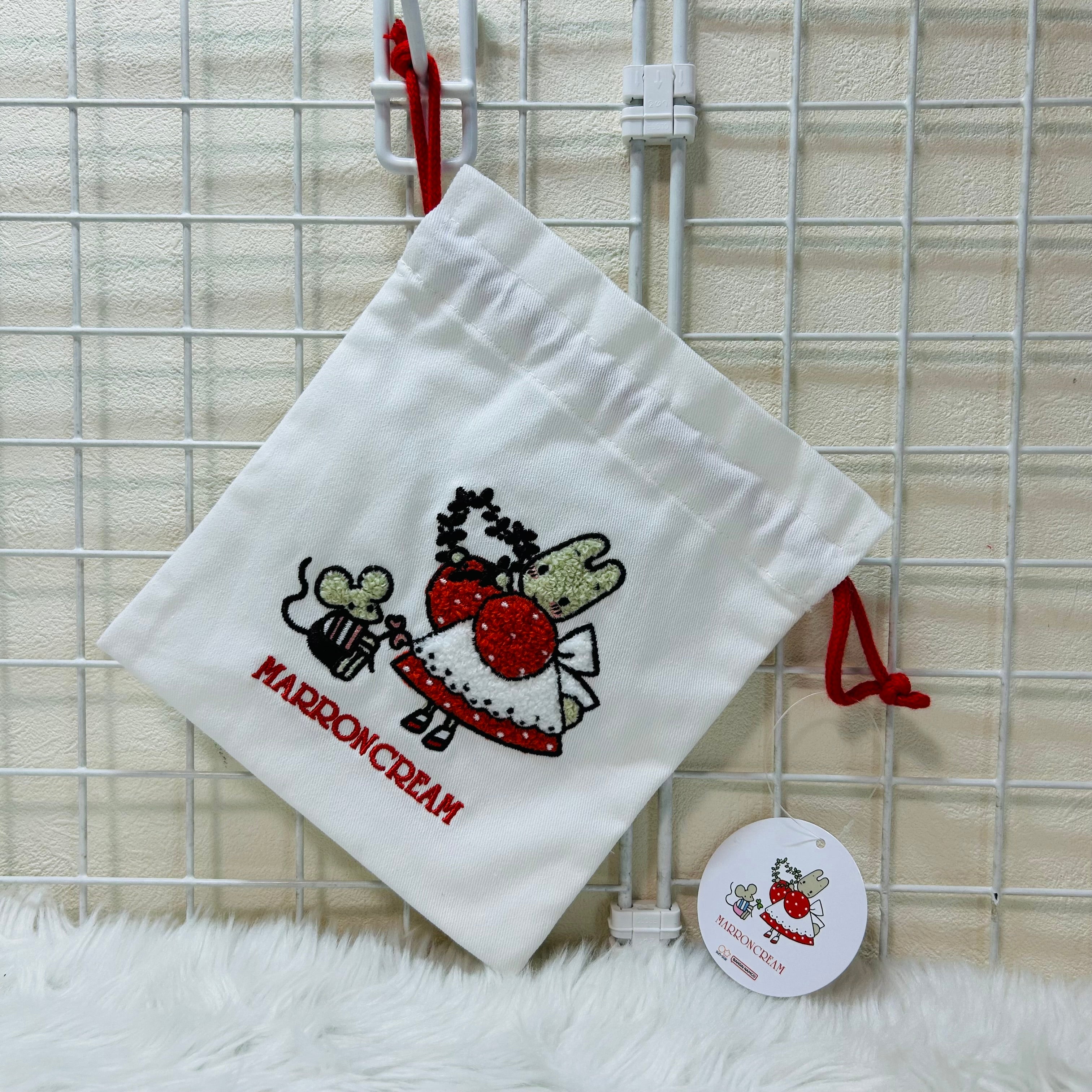 Marron Cream White Drawstring Pouch with Red String