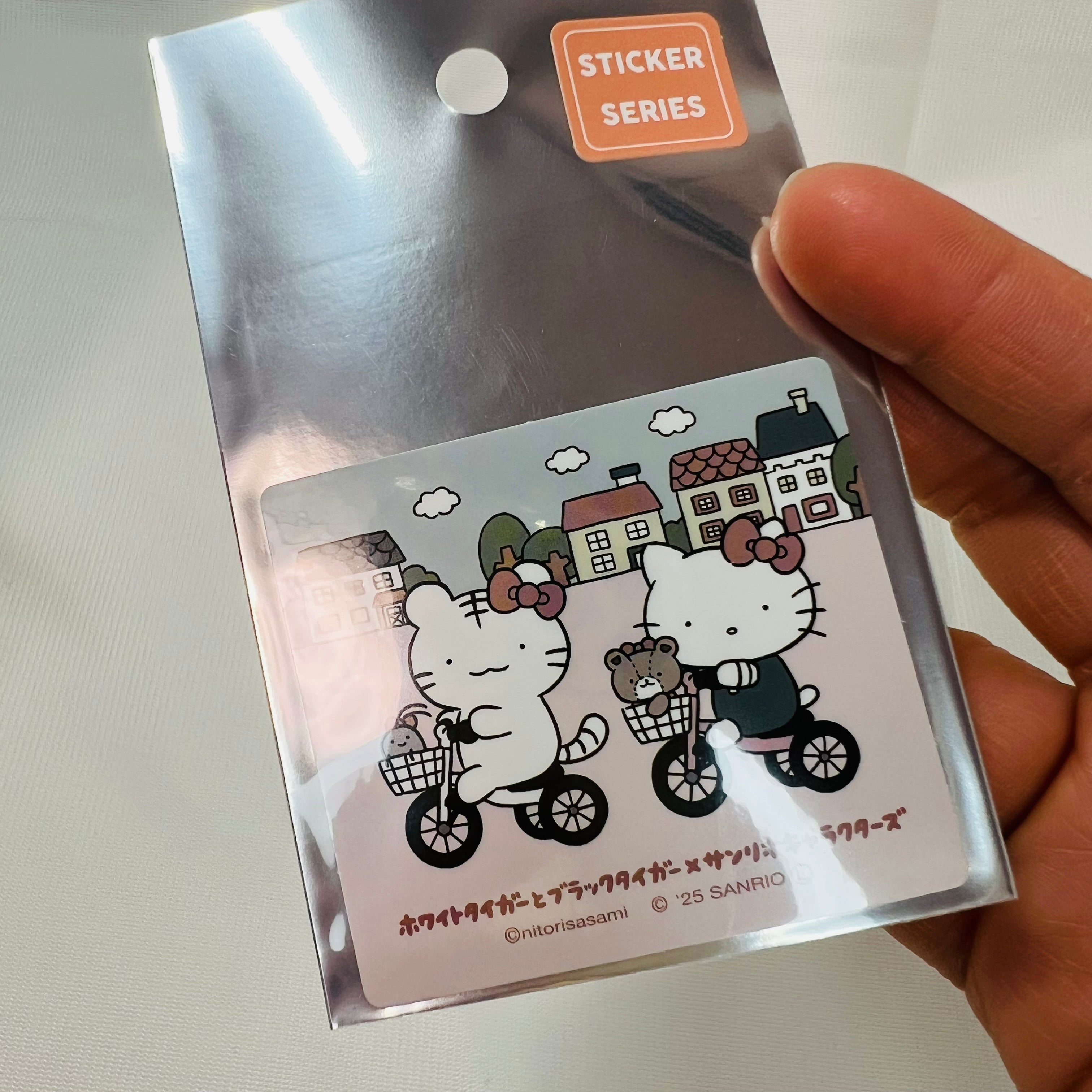 White Tiger and Black Tiger x Sanrio Characters Smartphone-sized Sticker (Tricycle)